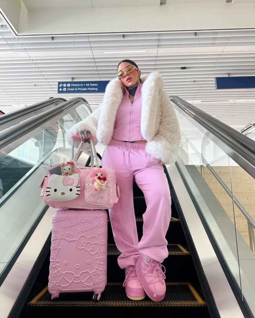 This second outfit is going to give you a distinct look. It features a pair of baggy pants that lend a high-fashion vibe, paired with a sleeveless top that creates a chic, “tour-ready” aesthetic. With this ensemble, anyone can now effortlessly achieve a celebrity-inspired look. To complete the outfit, simply pair it with high-heeled sandals.