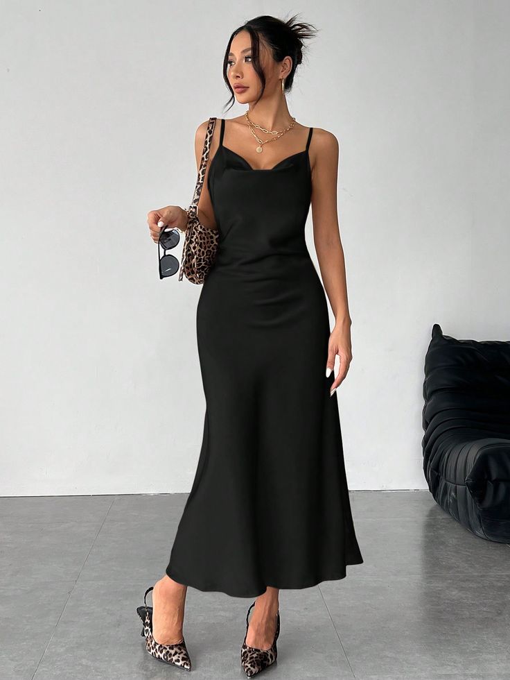 The idea to feature these black satin dresses struck me when I realized that their demand has been surging recently, signaling a major comeback for this trend. They lend you a look that is both modern and effortlessly chic, freeing you from any styling worries or stress. You can pair them with just about any accessory—they are incredibly versatile and don’t require you to spend a fortune. When compared to contemporary styles, these dresses truly stand out as one of the best fashion choices available today.