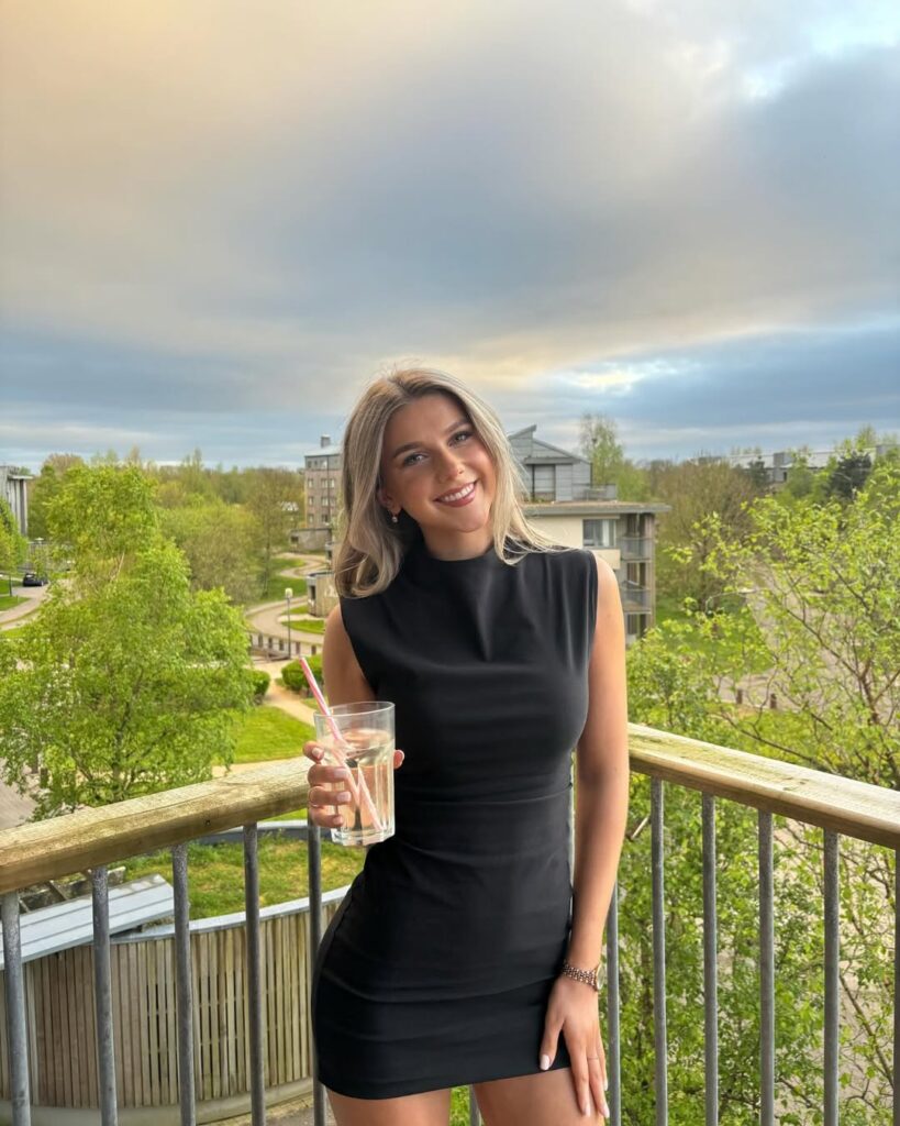 This dress is sure to elevate your style game. Its distinctive rounded neckline design is particularly renowned, and its vibrant color is bound to enhance your overall look. As for how you choose to style it—specifically regarding your hairstyle and choice of sandals—that is entirely up to you. However, if you are looking for my recommendation, I would suggest pairing it with high-heeled sandals—ideally, a transparent pair like the ones shown here.
