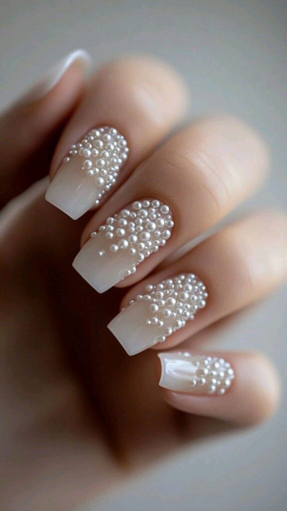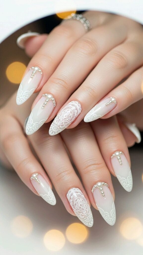 A White Dotted Bridal Nail design